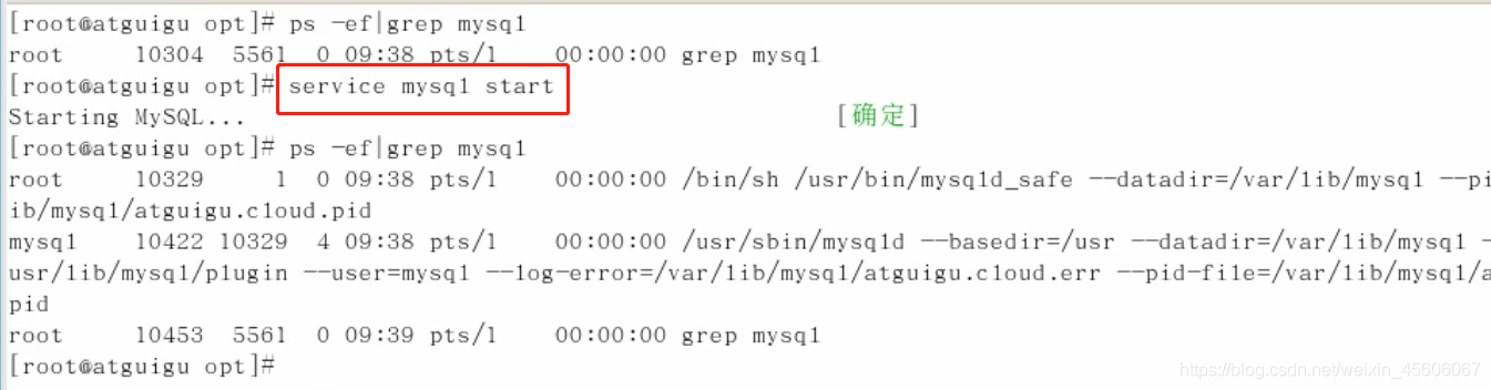 启动服务:service mysql start